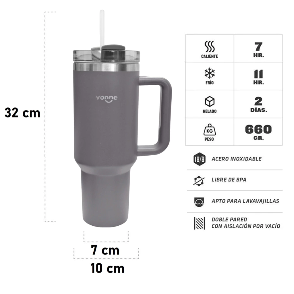 Vaso Térmico Vonne de 1,18 Lts. Con Sorbete Ultra Resistente.