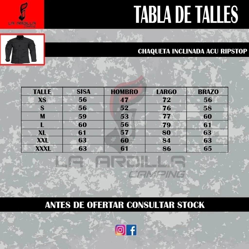 • *Confeccionado en tela Ripstop (Algodón/Poliéster)
