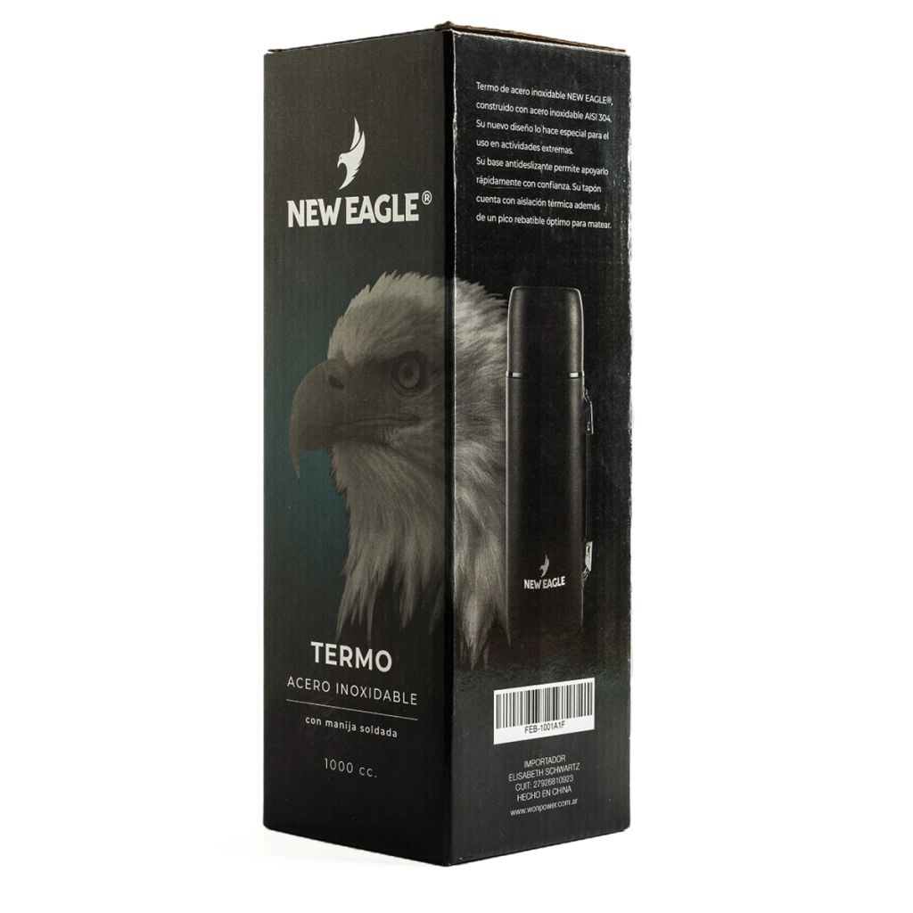 El TERMO NEW EAGLE® FEB-1000F es un clásico que ha demostrado su calidad en el mercado argentino desde 1999. Ahora, la conocida marca FLYING EAGLE® ha evolucionado a NEW EAGLE®, ofreciendo mejoras significativas en su línea de productos.