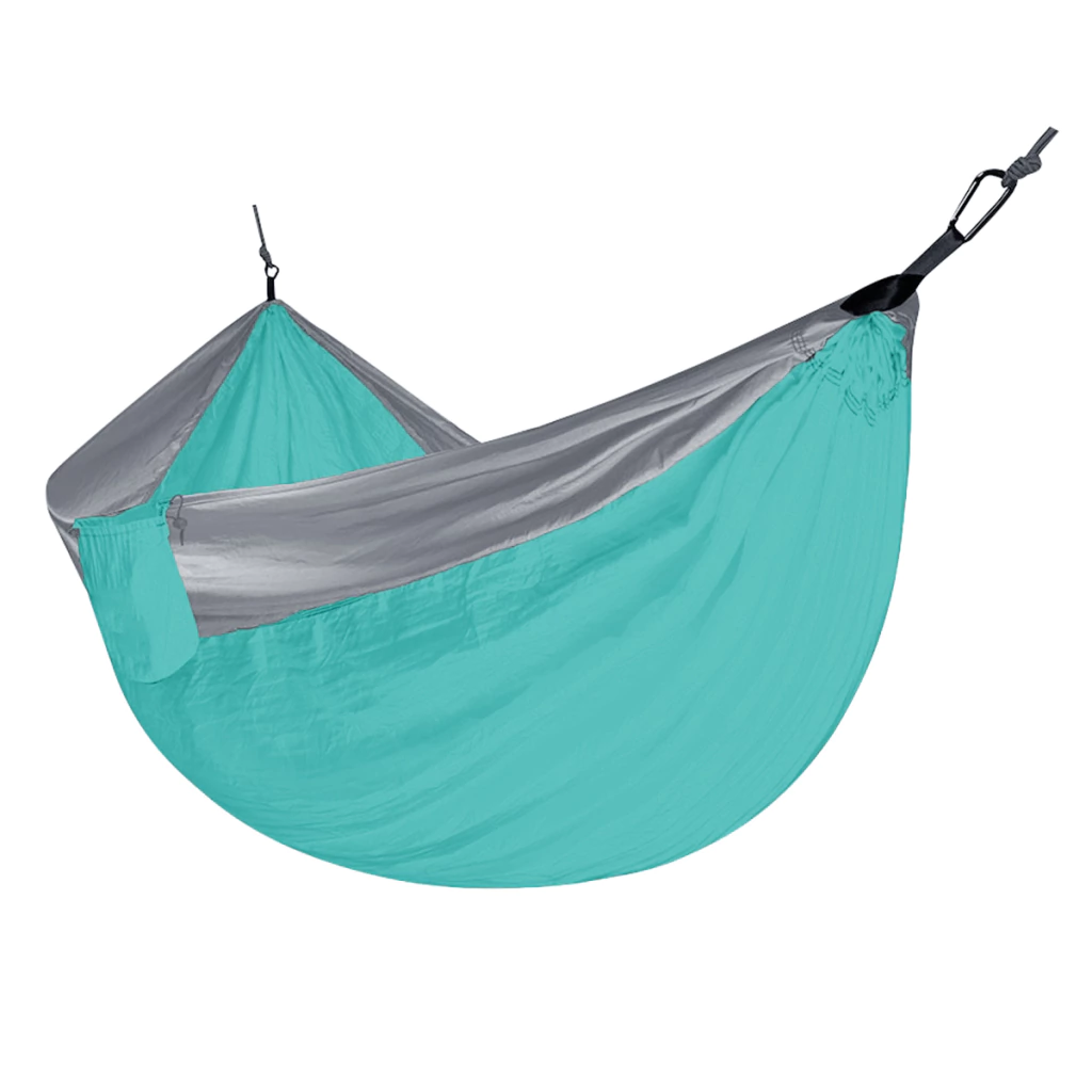 Hamaca de camping individual, ultra resistente, soporta hasta 220kg de peso, cuando productos similares soportan tan solo 180kg o menos, es super liviana (pesa tan solo 660gr!), y pequeña, estando guardada es mas chica que un paquete de yerba!, trae todo lo necesario para instalarla, el par de sogas, y los dos mosquetones resistentes para que sea seguro su uso.