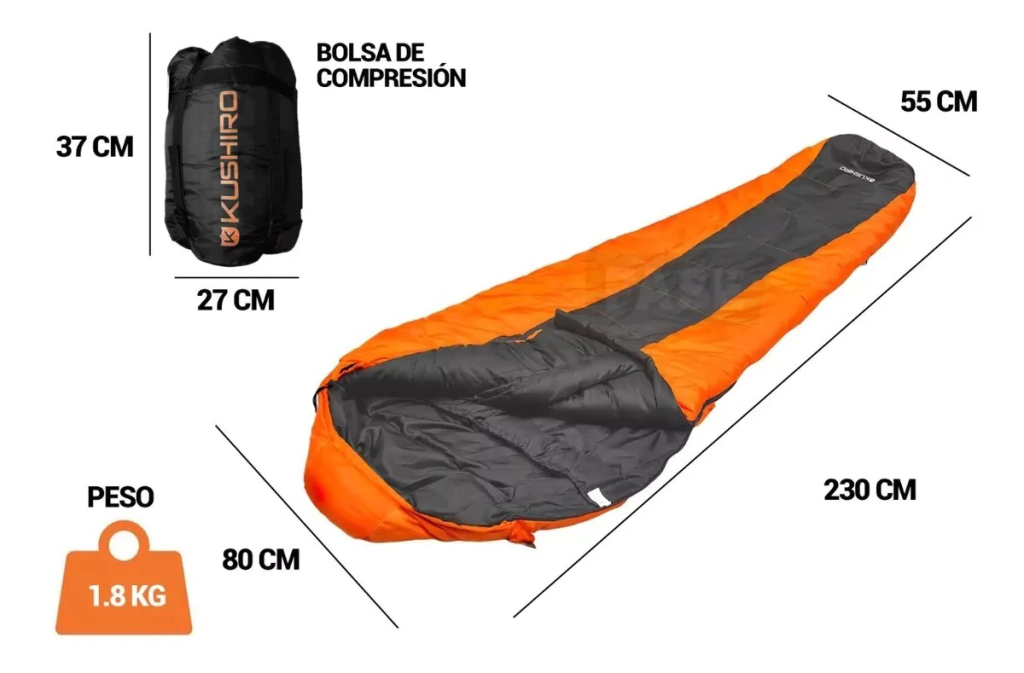 Bolsa de dormir rectangular con Capucha BDM-K2. Kushiro