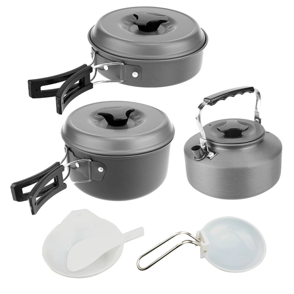 - Sartén: De 16,70 cm de diámetro y 3,9 cm de altura, este utensilio también presenta un mango plegable, facilitando su transporte.