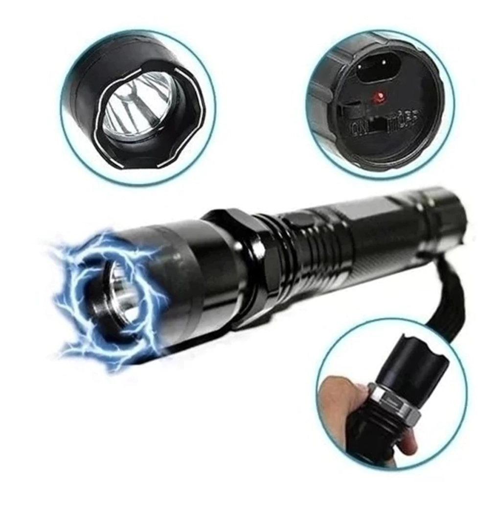 Picana Eléctrica/Linterna 1101 TYPE de 1000 Kv, especial para la defensa personal adaptada a los tiempos de hoy, con linterna led y cable cargador directo a 220v y funda elástica para portabilidad en la cintura.