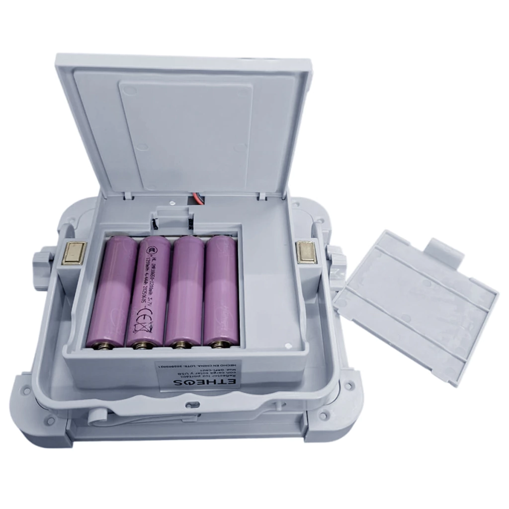 - Autonomía y carga: Brinda entre 2 y 4 horas de uso continuo. Su batería reemplazable de 4.8Ah se recarga mediante energía solar o USB, asegurando flexibilidad y autonomía en cualquier situación.