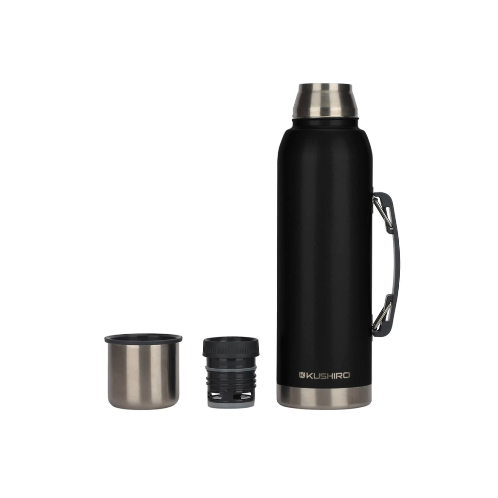 El Termo Kushiro es perfecto para quienes disfrutan de actividades al aire libre, viajes largos o simplemente quieren disfrutar de una bebida a la temperatura adecuada durante todo el día. Su diseño ergonómico con manija permite un transporte fácil y cómodo.