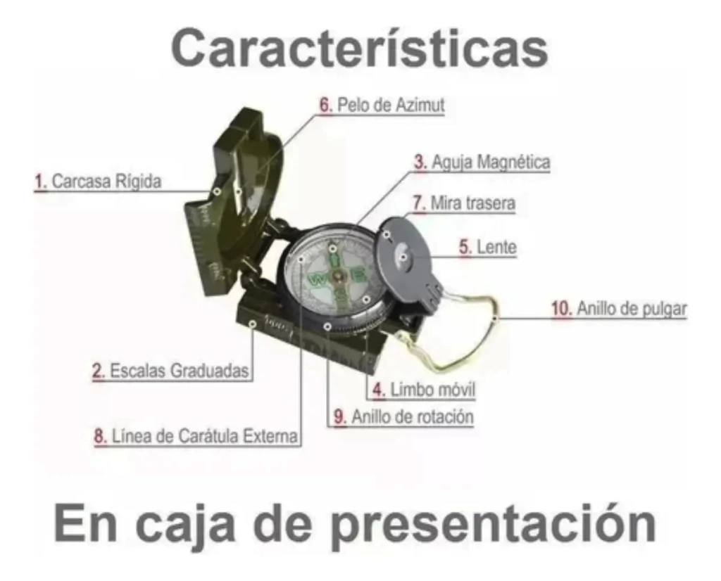 • Brújula militar o de marcha, diseñada para obtener rumbos con más precisión a partir de elementos reales que se disponen a la vista.